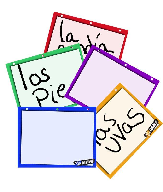 Divide your class into teams and watch how they respond. These colorful dry-erase tools make interactive teaching fun, affordable, and easy. Kwik Sheets are perfect for games and study groups. They are three-hole punched for use with binders. Each set of 30 includes six of each color: red, green, blue, orange, and purple. 11 x 8 inches. Markers not included.