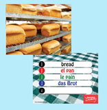 New images, bigger-than-ever cards, updated word listsdash;everything you asked for! Flashcards and bingo games with 32 topic-related vocabulary words. The flashcards are a full 8 x 11 inches with vocab in English, Spanish, French and German; plus a blank space to add your own language on the back. We’ve even included a reproducible study sheet for the students. The bingo games are 8 x 11 inches and include 36 full-color game cards. Bingo images are over 1 inch square and have the classic free space in the middle, great for reinforcement. Includes an envelope for storage. br /br /br /Vocabulary includes: bacon, bread, butter, cereal, cheese, chicken, coffee, eggs, fish, ground beef, honey, meat, milk, oatmeal, orange juice, pancakes, pasta, pepper, rice, rolls, salad, salt, sandwich, sausages, soup, steak, stew, sugar, tea, toast, tuna and waffles.br /