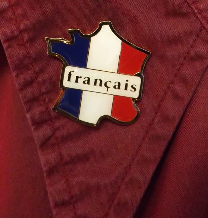 Fran;ccedil;ais/em country pin, 1 x 1 inch.