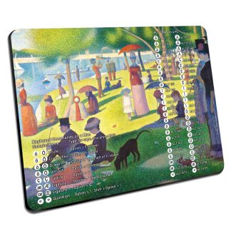 Keep a keyboard cheatsheet at your fingertips! This mouse pad features Georges Seurat’s, 1884 iconic Un dimanche apr;egrave;s-midi ;agrave; l/em’/em;Icirc;le de la Grande Jatte/em and the most frequently used keyboard commands in the French language. Mac- and PC-user friendly.Copyright 2019. English. All levels. 9 x 7-inch surface, 1/8 inch thick. Nylon/rubber.
