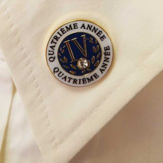 French fourth-year pin, 1 inch in diameter. Gold-plated with a rhinestone chip.