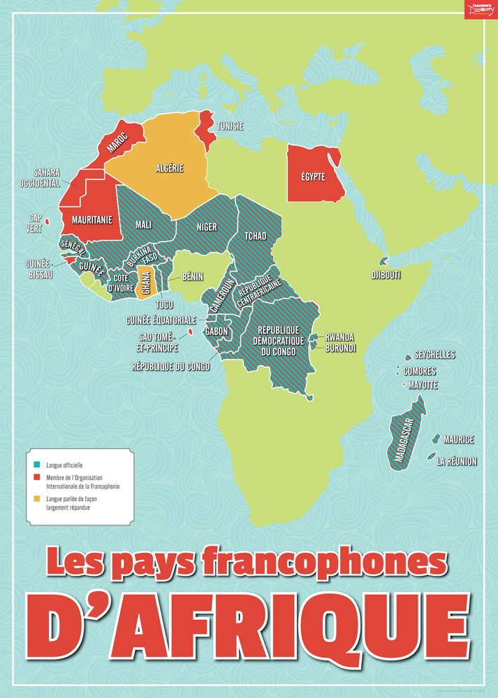 Introduce students to francophone Africa. Copyright 2018. 19 x 27 inches. Laminated.