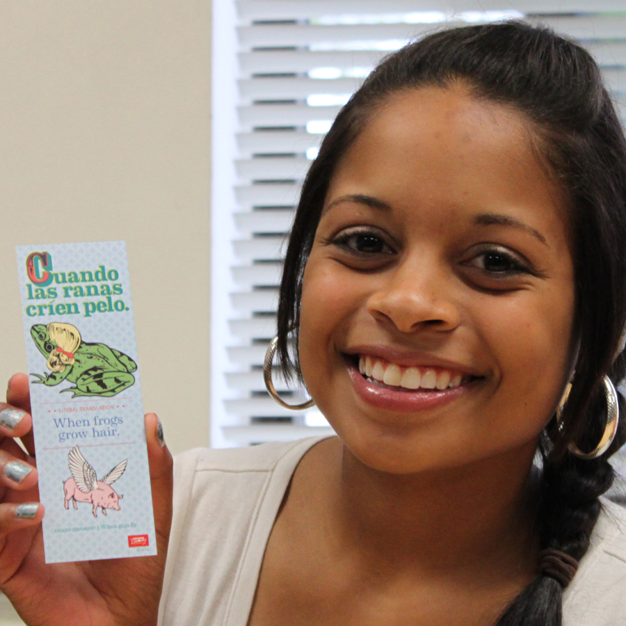 p style=”margin-bottom: 0in;”Give your students a peek into the colorful world of Spanish idiomatic speech that’s sure to produce smiles! Each bookmark has five Spanish idioms, as well as the literal translations and the English equivalents of each. Bookmarks measure 2 x 6 inches. Glossy full color on the front, black and white on the back. Package of 100. Cardstock.