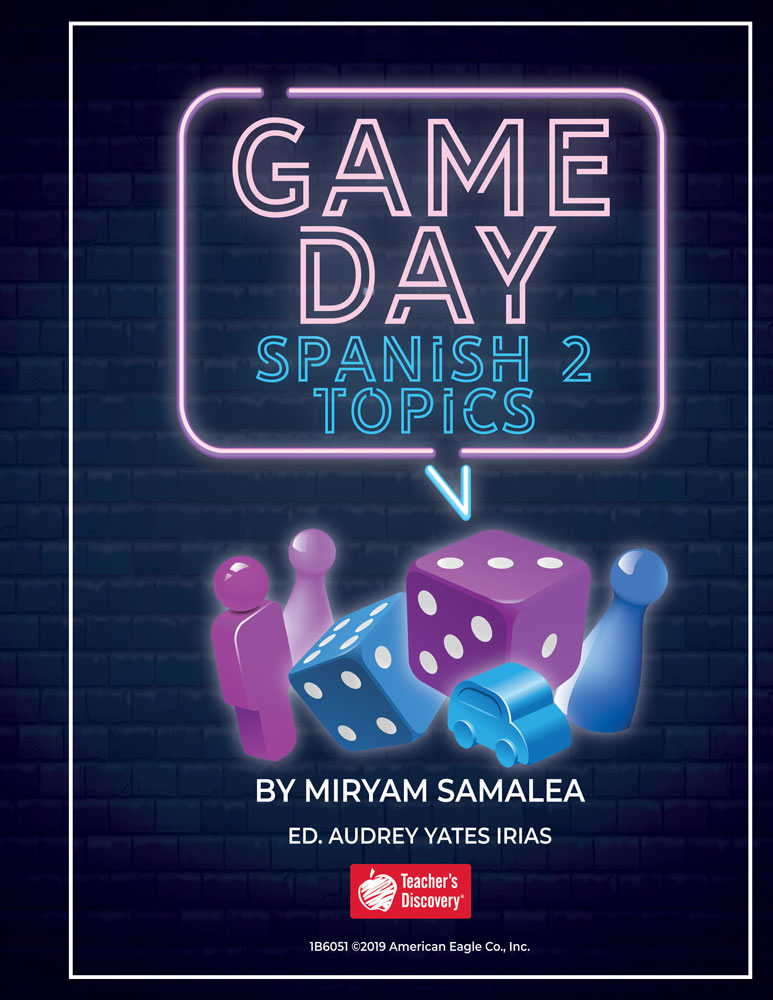 Students review content before a test in game-based format, centered around the most common topics taught in Spanish 2. Includes 10 comprehension questions based on vocabulary and 10 more based on grammar for each topic, with an accompanying answer key.Works with any game! These are the author;#39;s favorites: Candy Land Chutes and Ladders Sorry Trouble HiHo! Cherry-Ospan style=”color:#FF0000;”Download the FREE Sample Lessons PDF and Useful Game Expressions PDF located in “Additional Info.”/spanCopyright 2019. English, Spanish. Intermediate. High school. Reproducible. 84 pages.Book Download: PDF download, Adobe Reader required to view PDF.Print Book: Spiral-bound. 8.5 x 11 inches.img alt=”” src=”//aedownload.net/teachersdiscovery/images/Author_Miryam_Samalea.jpg” style=”float: left; border-width: 0px; border-style: solid; margin: 0px 6px; height: 135px; padding-right: 10px;” /About the AuthorMiryam Samalea is a native of Spain and, in addition to Spanish, she speaks English and French. She received a bachelor;#39;s degree in Translation and Interpreting from the University of Granada, Spain. She also holds a certificate in Dubbing and Voice Over.