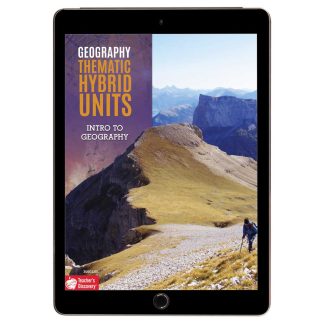This versatile digital resource is an entire thematic unit in one place! PDFs include complete teacher edition and editable student pages. Students simply type their answers in, save, and upload! Printable and projectable, this unit is perfect for seamless teaching in class, at home, or any combination! Flexible design works in any learning environment, ready to upload to Google Classroom or any other learning platform! Differentiated and supportive, with a solid mix of warmups, out-of-the-box activities, content and skills practice, graphic organizers, mapping and research exercises, and resources. Activities include: Easy Debates: Should the United States Do More Than What We Are Currently Doing to Protect Our Environment? and What Is the Most Beneficial Map Projection of the Earth?, SHOW ME Challenges and Clues: U.S. Geography and The World, Mock Trial: The Trial of Ferdinand Magellan, Document-Based Questions: How Does Geography Influence Destiny?, and Contemporary Issues–Overpopulation. Ready to implement! No textbook, no problem. An introductory reading with bolded key vocab terms starts the unit. Aligned to C3 and Common Core national standards.Middle school, high school. Reproducible. PDF download, 129 pages.