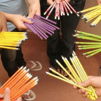 Whether they are diligently writing, twirling hair, being chewed on or flying through the air (It happens!), your students spend hours every day around pencils. They’re pencil connoisseurs, and this selection of colors, patterns and German phrases will satisfy their discriminating tastes! Assorted designs and colors. Approximately 84 No. 2 graphite pencils per pound.