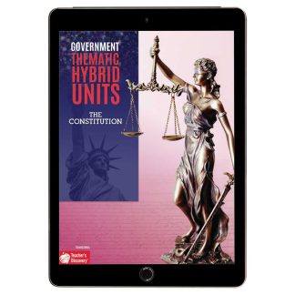 This versatile digital resource is an entire thematic unit in one place! PDFs include complete teacher edition and editable student pages. Students simply type their answers in, save, and upload! Printable and projectable, this unit is perfect for seamless teaching in class, at home, or any combination! Flexible design works in any learning environment, ready to upload to Google Classroom or any other learning platform! Differentiated and supportive, with a solid mix of warmups, out-of-the-box activities, content and skills practice, graphic organizers, primary source analysis, and resources. Activities include: Easy Debate: Should Congress Have Term Limits?, Easy Debate: What Is a Better Voting Age: 18 or 21?, Prove It! Persuasion Station: Should the U.S. Use the Electoral College or the Popular Vote to Determine the Presidency?, and Document-Based Questions: The Constitution. Ready to implement! No textbook, no problem. A historical context reading with bolded key vocab terms starts the unit. Aligned to C3 and Common Core national standards.Middle school, high school. Reproducible. PDF download, 103 pages.