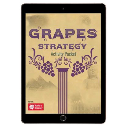 Using a simple mnemonic device, students will characterize any civilization by Geography, Religion, Achievements, Politics, Economics, and Social Structures.Excellent for independent learning, the 22-page downloadable packet provides over 20 activities and research topics. Students practice applying GRAPES to different historical facts, create a GRAPES foldable, and follow a writing process to create a formal paper connecting any region to the GRAPES factors.Middle school, high school. PDF download, 22 pages.a “https://www.teachersdiscovery.com/product/grapes-strategy-skinny-poster/social-studies” target=”_blank”uCheck out the GRAPES Strategy Skinny Poster!/u/a