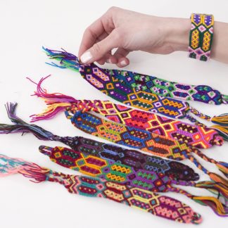 Remember braiding friendship bracelets when you were in school? Hand-woven by our friends in Guatemala, every bracelet is unique.Woven thread.Imported from Guatemala.Assorted colors and designs.One size fits most.Handmade! No two are alike!