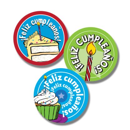 These new birthday stickers have more colors and styles than past versions! Three sheets of 20 assorted full-color stickers, for a total of 60 stickers. Each round sticker measures over 1 inch across.