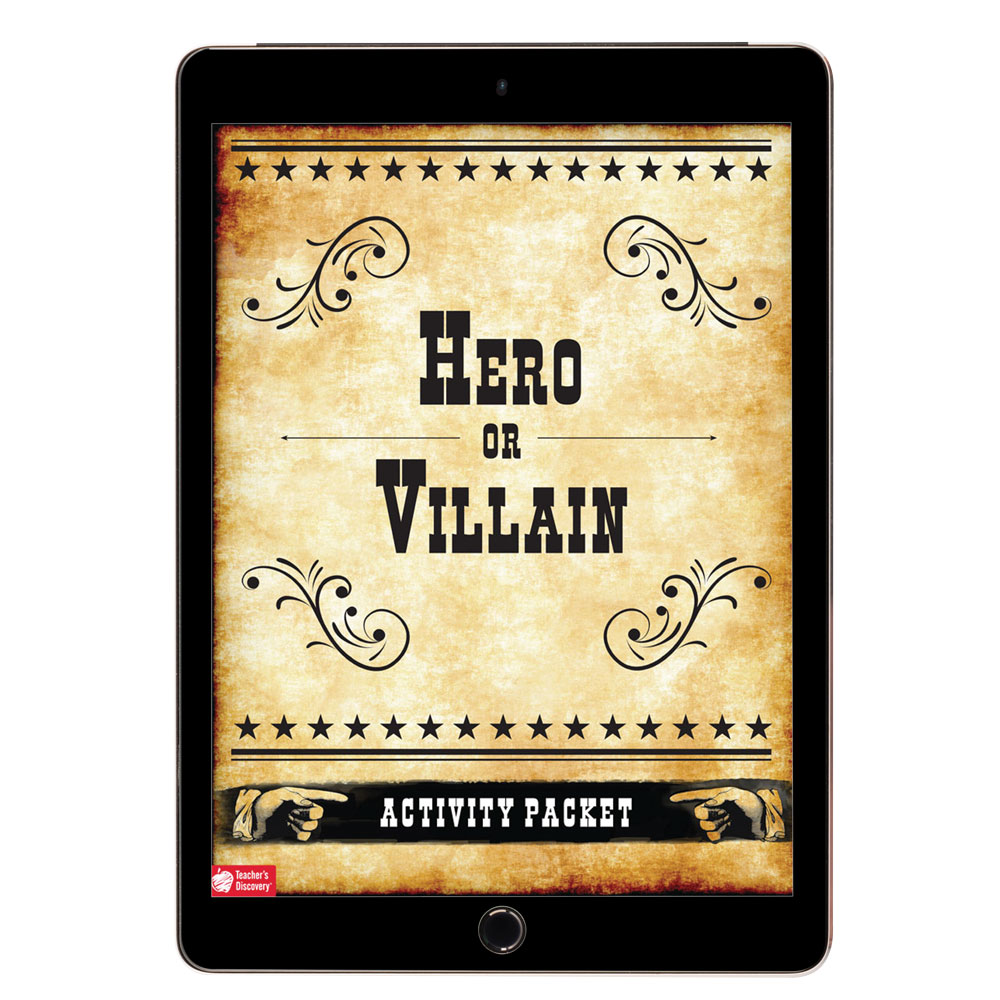 History tends to judge our past leaders as extremes: Benedict Arnold was a traitor! Abraham Lincoln was an American hero! Using the activities in this resource, students dig a little deeper and see beyond the established historical narratives. Excellent for independent activities, this 18-page downloadable packet provides over 20 activities and research topics. Students will analyze a historical person on their heroic or villainous attributes, complete a job resume, file a villainous police report, write a eulogy, evaluate which person from history was more heroic, and more! All levels. PDF download, 18 pages.a “https://www.teachersdiscovery.com/product/hero-or-villain-blank-set-of-35-profile-posters” target=”_blank”uCheck out the Hero or Villain? Blank Set of 35 Posters!/u/a