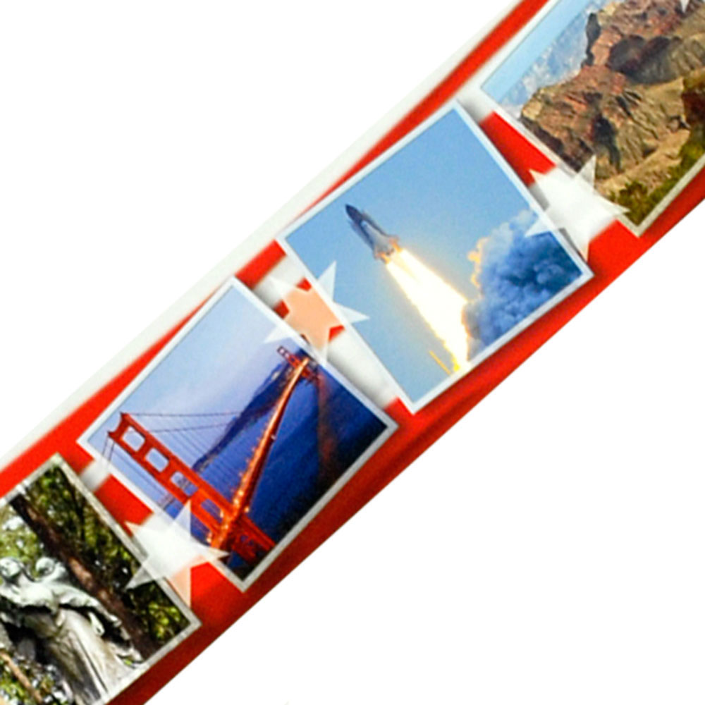 Decorate your classroom with 43 feet of American symbols and history.28 pieces. Twelve 3 x 39-inch strips, sixteen 3 x 3-inch corner pieces. Cardstock.