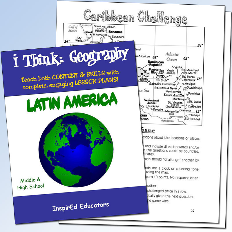 This unit examines the region of Latin America. A variety of engaging, student-centered activities examines a wide assortment of regional issues through the lens of the five themes of geography. Unit consists of complete and easy-to-use lesson plans including a culminating research project along with study guides and differentiated tests. Like all InspirEd materials, they incorporate critical and creative thinking, test-taking skills, reading and writing in the content area, and much more!Includes: Region Location Colonial influences Climate The Andes Government and more!Copyright 2008. Middle school, high school. Reproducible. 100 pages.Book Download: PDF. Adobe Reader required to view PDF.Print Book: Softcover, 8 x 11 inches.