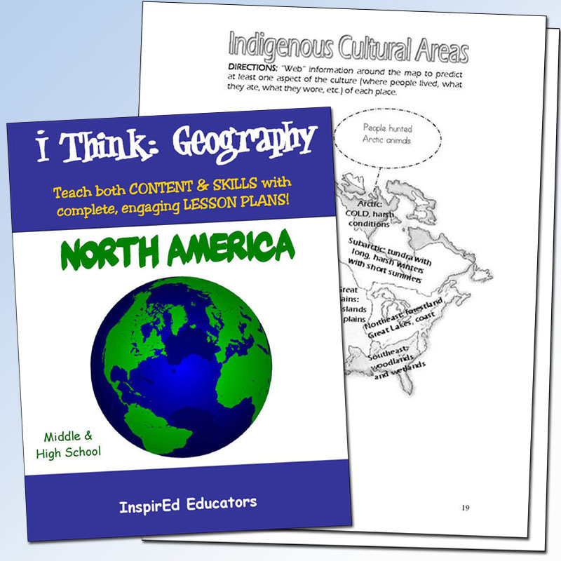 This unit examines the regions of North America. A variety of engaging, student-centered activities examines a wide assortment of regional issues through the lens of the five themes of geography. Unit consists of complete and easy-to-use lesson plans including a culminating research project along with study guides and differentiated tests. Like all InspirEd materials, they incorporate critical and creative thinking, test-taking skills, reading and writing in the content area, and much more!Includes: Region Location Assimilation Independence Supply and demand NAFTA Immigration and more!Copyright 2008. Middle school, high school. Reproducible. 100 pages.Book Download: PDF. Adobe Reader required to view PDF.Print Book: Softcover, 8 x 11 inches.