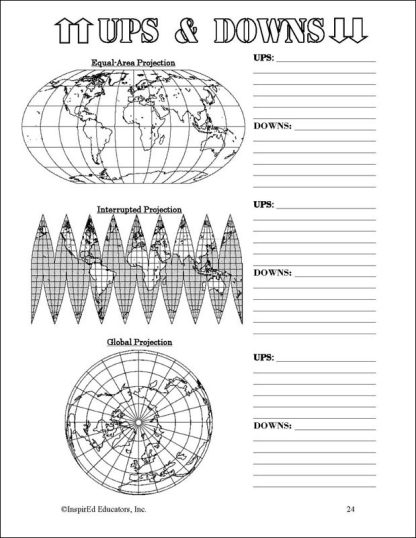 A variety of engaging, student-centered activities and lesson plans about geography. This unit consists of complete and easy-to-use lesson plans along with study guides and differentiated tests. Like all InspirEd materials, they incorporate critical and creative thinking, test-taking skills, reading and writing in the content area, and much more!Copyright 2008. Middle school. Reproducible. 98 pages.Book Download: PDF. Adobe Reader required to view PDF.Print Book: Softcover, 8 x 11 inches.