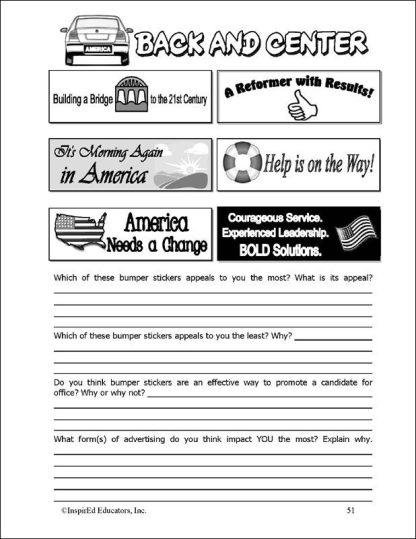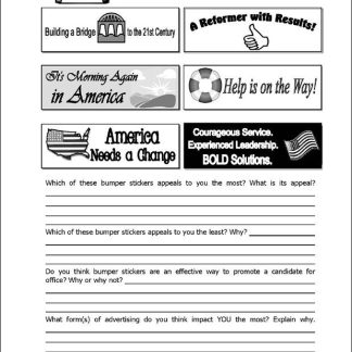 Students learn what is important to know about electing the president. Subject matter includes powers and qualifications, primaries and caucuses, national party committees, choosing a vice president, conventions, the platform, fundraising, campaigns, the media and elections, the Electoral College, and much more.Copyright 2008. Middle school, high school. Reproducible. 98 pages.Book Download: PDF. Adobe Reader required to view PDF.Print Book: Softcover, 8 x 11 inches.