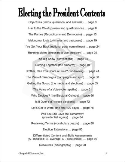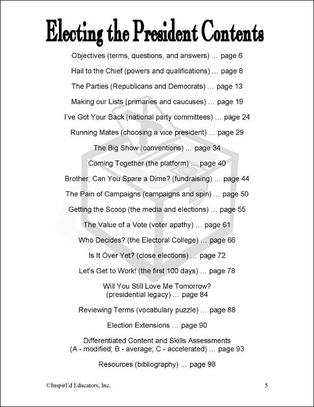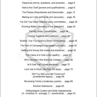 span style=”font-size: large;”Students discover a variety of fascinating facts about the United States government/spanA variety of engaging, student-centered activities and lesson plans examine government. These units consist of complete and easy-to-use lesson plans along with study guides and differentiated tests. Like all InspirEd materials, they incorporate critical and creative thinking, test-taking skills, reading and writing in the content area, and much more!Copyright 2008. Set of 6 books or PC/Mac download (PDFs), 98 pages each title, reproducible. Middle/high school.span style=”color: #ff0000;”Adobe Reader is required to view PDFs. An email address is required for all downloads./spanspan style=”font-size: medium;”i Think: Government Set of 6 includes:/span3S2420 i Think: Government, Electing the PresidentSubject matter includes: Powers and Qualifications, Primaries and Caucuses, National Party Committees, Choosing a Vice President, Fundraising, and much more3S2421 ~i Think: Government, Civic ParticipationSubject matter includes:The Symbolism of the Donkey and the Elephant, Democratic and Republican Views, Public Opinion Polls,Lobbying, and much more3S2444 ~i Think: Government, The ConstitutionSubject matter includes:Principles of Government, Limits of Power, Civil Responsibility, Order vs. Freedom, Amendments, Taxes, and much more3S2447 ~i Think: Government, The Executive BranchSubject matter includes:Presidential Responsibilities, Qualifications for the Job, The Vice President, State of the Union, Foreign Policy, and much more3S2515 ~i Think: Government, The Legislative BranchSubject matter includes:The American legislature, Qualifications, Powers, Pork Barrel Politics, Campaigns, Interest Groups and Lobbies, and much more3S2516 ~i Think: Government, The Judicial BranchSubject matter includes:Federal Jurisdiction, The Supreme Court, Landmark Cases, Rights of the Accused, Juvenile Justice, Civil Rights Cases, and much more