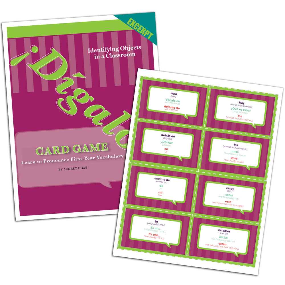 D;iacute;galo/em is a game that enables students to simultaneously practice pronunciation and memorize vocabulary. On one side of the card is a phonetic version of a common expression, if not a whole sentence, associated with the theme of this chapter, chosen to simulate how one would use words and conjugate verbs in that context. On the other side is the actual Spanish version that the student’s teammates will guess, and the English equivalent, upside-down. Vocabulary inspired by the Realidades/em textbook series by Pearson. Some assembly required upon printing.This download includes: Instructions A pronunciation guide A flash card key, also unique by color to this chapter A reference guide unique to this chapter Playing cards, with up to eight cards per sheet, that print exactly back-to-backCopyright 2018. English, Spanish. Beginning. Middle school, high school. Reproducible. Download. PDF, Adobe Acrobat Reader DC required to view PDF. 12 pages. img alt=”” src=”//aedownload.net/teachersdiscovery/images/Author_Audrey_Irias.jpg” style=”float: left; border-width: 0px; border-style: solid; margin: 0px 6px; height: 135px; padding-right: 10px;” /About the Author Audrey Yates Irias started learning Spanish at age 10 in a FLEX program in her elementary school, because her aunt lived in Puerto Rico. She was so enamored with learning languages that she dove in head first, and took multiple years of Spanish and French in high school. Following her passion, she was a double major in Spanish and French Education and a TESOL minor, at Illinois State University–during which time she studied in Spain and France. She taught for 11 years in both traditional as well as virtual classrooms. In 2016, she earned her master’s in Translation and Interpreting from the University of Illinois.Audrey enjoys spending time with her daughter, dancing, teaching students one-on-one, and developing curriculum that benefits students and teachers of World Languages.