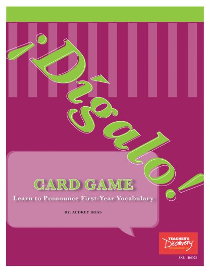 /moo chahs grah see yahs/ Say it slowly and a student guesses both the Spanish word and what it means in English, right? This resource book includes every vocabulary word taught in Spanish 1. Some cutting required.The book also contains templates for reproducing as many game cards as you need!Features: Vocabulary Reference Guide with the phonetics, in addition to Spanish and English terms Pronunciation guide to understand the game’s phonetic system Instructions on how to play Vocabulary based on the common themes taught throughout Spanish 1 Template containing 1,074 cards for photocopyingCopyright 2018. Spanish, English. Level 1. Middle school, High School. Download. PDF, Adobe Reader required to view PDF. Reproducible. 8.5 x 11 inches. 158 pages.Teacher’s Tip: p style=”margin-left: 40px;”Students can partner up and quiz each other, then pass the card to the group next to them. Or, the teacher can show the card under a digital camera and have the students around the class pronounce, translate, and learn. img alt=”” src=”//aedownload.net/teachersdiscovery/images/Author_Audrey_Irias.jpg” style=”float: left; border-width: 0px; border-style: solid; margin: 0px 6px; height: 135px; padding-right: 10px;” /About the Author Audrey Yates Irias started learning Spanish at age 10 in a FLEX program in her elementary school, because her aunt lived in Puerto Rico. She was so enamored with learning languages that she dove in head first, and took multiple years of Spanish and French in high school. Following her passion, she was a double major in Spanish and French Education and a TESOL minor, at Illinois State University–during which time she studied in Spain and France. She taught for 11 years in both traditional as well as virtual classrooms. In 2016, she earned her master’s in Translation and Interpreting from the University of Illinois.Audrey enjoys spending time with her daughter, dancing, teaching students one-on-one, and developing curriculum that benefits students and teachers of World Languages.