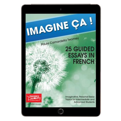 Introduce imaginative and personal essay writing to French students. These essays develop the students’ writing skills by using advanced verb tenses, grammar, and idiomatic structures. By writing essays in French, students will be able to formulate ideas, express opinions, and speculate about the future.Students write personal essays: 5 topics in Le pr;eacute;sent/em 3 topics in Le pass;eacute; compos;eacute;/em et l’imparfait 3 topics in Le pass;eacute; compos;eacute;/em 4 topics in Le futur/em 7 topics in Le conditionnel dash; La conjonction si ;raquo;/em 3 topics in Le plus-que-parfait/emAligned to ACTFL Standards./Copyright 2016. French. Intermediate, Advanced. Reproducible. 45 pages.Book Download: PDF.Print Book: Softcover with CD (PDF). 8 x 11 inches.img alt=”” src=”//aedownload.net/teachersdiscovery/images/Author_Paula_Twomey_Sachuaman_Peru.jpg” style=”float: left; border-width: 0px; border-style: solid; margin: 0px 6px; height: 160px; padding-right: 10px;” /About the AuthorPaula Twomey/ is a Rockefeller Fellow, has a BA from SUNY Albany and an MA from Middlebury College, and is currently an adjunct instructor at Ithaca College. After 31 years in the classroom, Paula still enjoys teaching, traveling, mentoring, writing curriculum, authoring books, and giving advice!