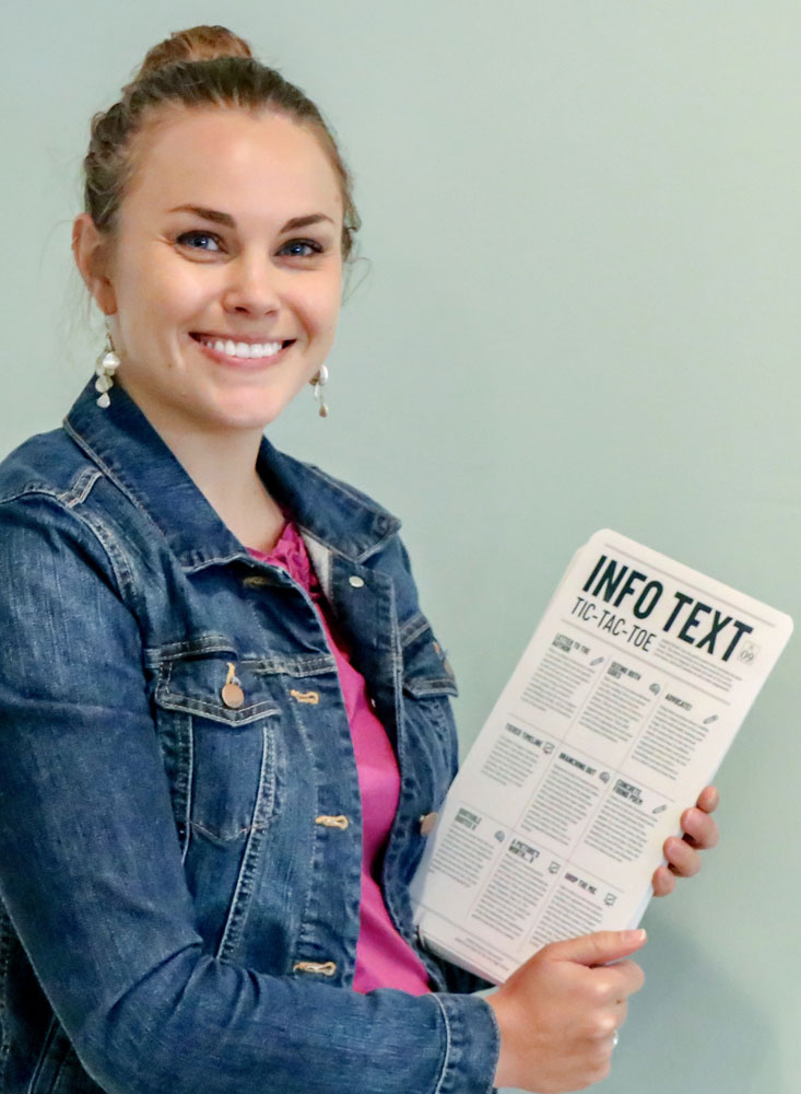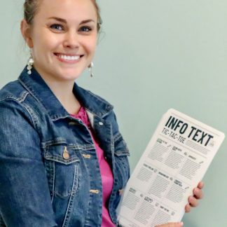 Both high school and middle school card sets have a total of 50 activities spanning 35 Tic-Tac-Toe cards that excite every student and work with any nonfiction text. Many activities within each differentiated level repeat, but no two cards are the same. Middle and high school sets each include enough cards for oversized classes. Info Text Tic-Tac-Toe is perfect for energizing your informational text unit.Info Text Tic-Tac-Toe provides differentiation three ways: Readiness: Three color-coded levels of difficulty Interest: Students choose which three adjacent activities to complete. Learning Preference: Activities include a variety of learning styles.Each Card Set includes: Lower Level: 8 Cards Average Level: 19 Cards Higher Level: 8 Cards Directions for Teachers Card with suggested usesCopyright 2018. Includes one middle school card set and one high school card set, 36 cards per set. 7 x 11 inches. Laminated cardstock.