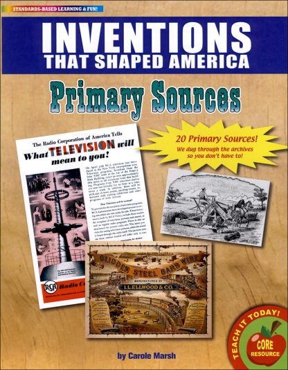 Pack of 20 primary source documents image cards relevant to the history of inventions that shaped America. Includes historical documents, maps, photographs, political cartoons, lithographs, diagrams, and letters in a mix of color, black-and-white, and sepia finishes.span style=”color:#FF0000;”Download the Gallopade Free Online Teacher;#39;s Guide for Primary Sources PDF located in “Additional Info.”/spanAll levels. 8 x 11 inches each. Cardstock.