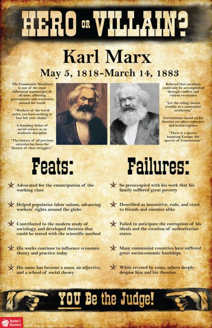 History tends to judge historical figures in extremes, and it can be tempting to view the world in black and white. Use this Karl Marx mini-poster to encourage students to look beyond established narratives into the real world of gray.Copyright 2019. 11 x 17 inches. Cardstock.
