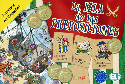 Teach Spanish prepositions and how to use them with this entertaining and educational game! Players draw a character card, find that character on the image board and identify the matching preposition to earn a doubloon. Whoever earns the most doubloons wins! Increase students’ grammar skills and comprehension, and boost vocabulary with colorful illustrations of a lively pirate island dash; all while they’re having fun! ;#169;2012. Spanish. Beginning. Up to eight players. Contains one 15 x 15-inch image board, eight preposition cards, 58 character illustration cards, 60 doubloons and one instruction manual.br /