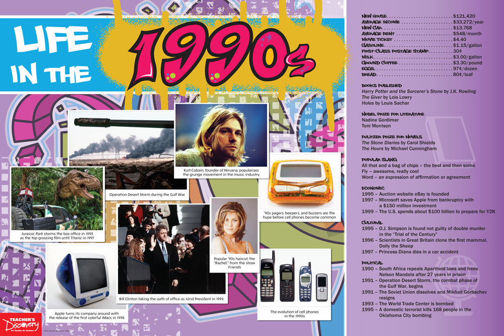 In the 1990s, you could buy a loaf of bread for 80;cent; and it only cost $1.15 a gallon for gas to drive to the store! Real photos, historical events, and cost-of-living comparisons show students how generations before them lived.All levels. 36 x 24 inches. Laminated.