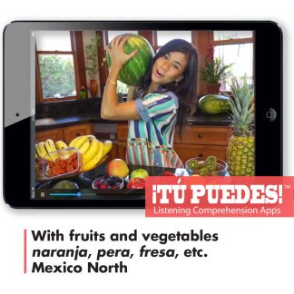 A real-world Spanish audio/visual listening clips, edited to under two minutes and accompanied by three levels of quizzes (Novice, Intermediate, and Advanced). As you listen, the clip pauses from time to time and asks the user a question. Once the question is answered, the video will resume playing. If you want you can replay the last part of the clip by pulling the video marker back. After the last question, students can review their results and send them to their teacher.Rawvana’s Healthy Food/br /With fruits and vegetablesbr /i>aranja, pera, fresa,/ etc.br /Mexico NorthHow it works:/br /1. You buy the app and we email the link to generate your 3 different level quiz codes.br /2. Tell your students to go to tupuedesapp.com/ on their computer or mobile device.br /3. Give your students the code for the quiz and have them do the exercise.br /4. Students press “Save and Submit” and their scores go to your results page.span style=”color: #FF3333″ To buy all 25 Listening Comprehension Apps a “https://www.teachersdiscovery.com/product/28055/spanish”click here./a//span