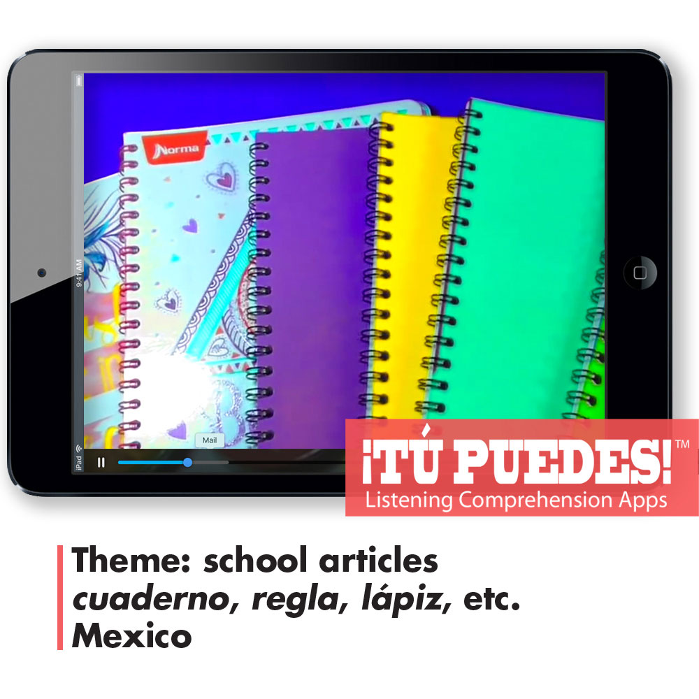 A real-world Spanish audio/visual listening clips, edited to under two minutes and accompanied by three levels of quizzes (Novice, Intermediate, and Advanced). As you listen, the clip pauses from time to time and asks the user a question. Once the question is answered, the video will resume playing. If you want you can replay the last part of the clip by pulling the video marker back. After the last question, students can review their results and send them to their teacher.School Shopping/br /Theme: school articlesbr /cuaderno, regla, l;aacute;piz,/ etc.br /MexicoHow it works:/br /1. You buy the app and we email the link to generate your 3 different level quiz codes.br /2. Tell your students to go to tupuedesapp.com/ on their computer or mobile device.br /3. Give your students the code for the quiz and have them do the exercise.br /4. Students press “Save and Submit” and their scores go to your results page.span style=”color: #FF3333″ To buy all 25 Listening Comprehension Apps a “https://www.teachersdiscovery.com/product/28055/spanish”click here./a//span