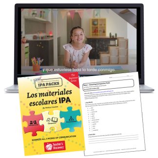The Beginner Series ;iexcl;Listos! /emIPA Packs are designed for early beginner, novice-low Spanish students. They are built around simplified themes and textbook-guided topics which are designed to prepare students for later work with higher-level, more in-depth IPAs. Each pack includes authentic resources that are carefully curated for the novice level, with grammar pop-ups and activities in all 3 modes with an emphasis on high-frequency words and brief, plain-language grammar explanations.This pack includes step-by-step instructions, and reading and listening comprehension activities that follow the ACTFL model. It is complete with an explanation of an IPA and how to use it, and nine Interpretive Tasks that break down the content, increase recognition of key words and phrases, develop context awareness, and promote language usage. In addition, it provides creative options for writing and/or speaking Interpersonal and Presentational Tasks, answer keys, and rubrics for each mode.Spanish: Beginner, Novice-Low LevelTheme: Contemporary Life: EducationTopics: School supplies; talking about what you do in schoolEssential Questions: How do I prepare for school? What do I do in school?Suggested Lessons: Vocabulary Illustrations Vocabulary Task Cardsspan style=”color:#FF0000;”Instant download delivery only./span 19-page PDF (IPA), infographic, and two-minute MP4 video.Copyright 2019. Spanish. Beginner, Novice-Level. Reproducible. Downloadable PDF, 19 pages. Adobe Reader required to view PDF.p align=”center”span style=”color:#FF0000;”Download your free Teacher Notes preview located in “Additional Info.”/spanimg alt=”” src=”//aedownload.net/teachersdiscovery/images/Authors_Melissa_Creamer_and_Elaine_Swope.jpg” style=”float: left; border-width: 0px; border-style: solid; margin: 0px 6px; height: 160px; padding-right: 10px;” /About the AuthorsMelissa Creamer and Elaine Swope have been teaching in Northeast Ohio for more than 10 years. They have similar teaching philosophies and styles, and have been working together to incorporate Integrated Performance Assessments and activities in their classes for the past several years. Together, they have presented sessions at the OFLA Annual Conference, ACTFL and have been guest speakers in education methodology classes for their alma mater.