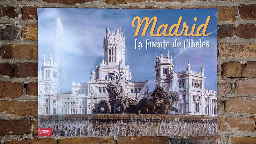Cybele Plaza is the urban, religious, and royal hub of Madrid. The centerpiece fountain features ancient mythological goddess Cybele, ;ldquo;Great Mother;rdquo; to the Greeks, in a lion-drawn chariot. Legends of Cybele range from her being the mother of King Midas to transforming wrongdoers into lions. Copyright 2015. 27 x 19 inches. Laminated.FREE! Teachable Moment download available. Click a “http://aedownload.net/teachersdiscovery/travelposters/1P1805_TeachableMoment.pdf” target=”_blank”HERE/a to download.