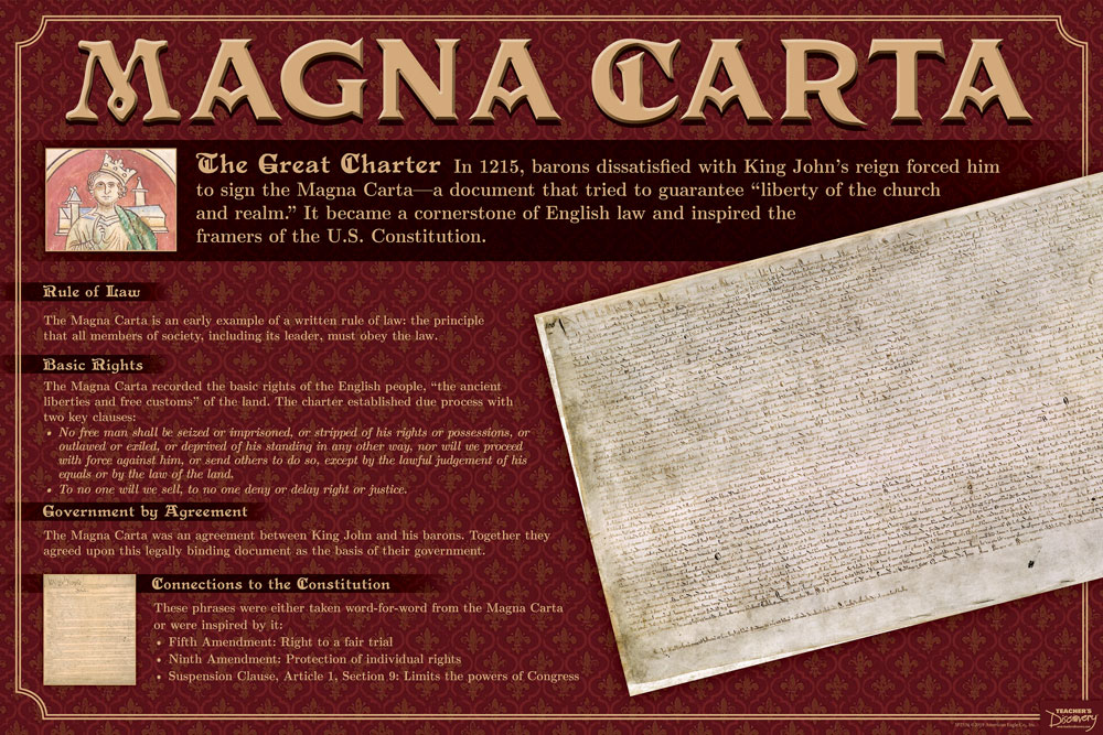Can a document from the medieval period be relevant today? Show students: What the Magna Carta was and what it accomplished How it inspired the framers of the U.S. Constitution36 x 24 inches. Laminated.
