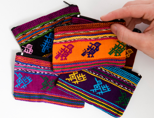 Carefully woven pouches, available in a variety of colors and patterns. 3 x 4 inches.Imported from Guatemala.Handmade! No two are alike!