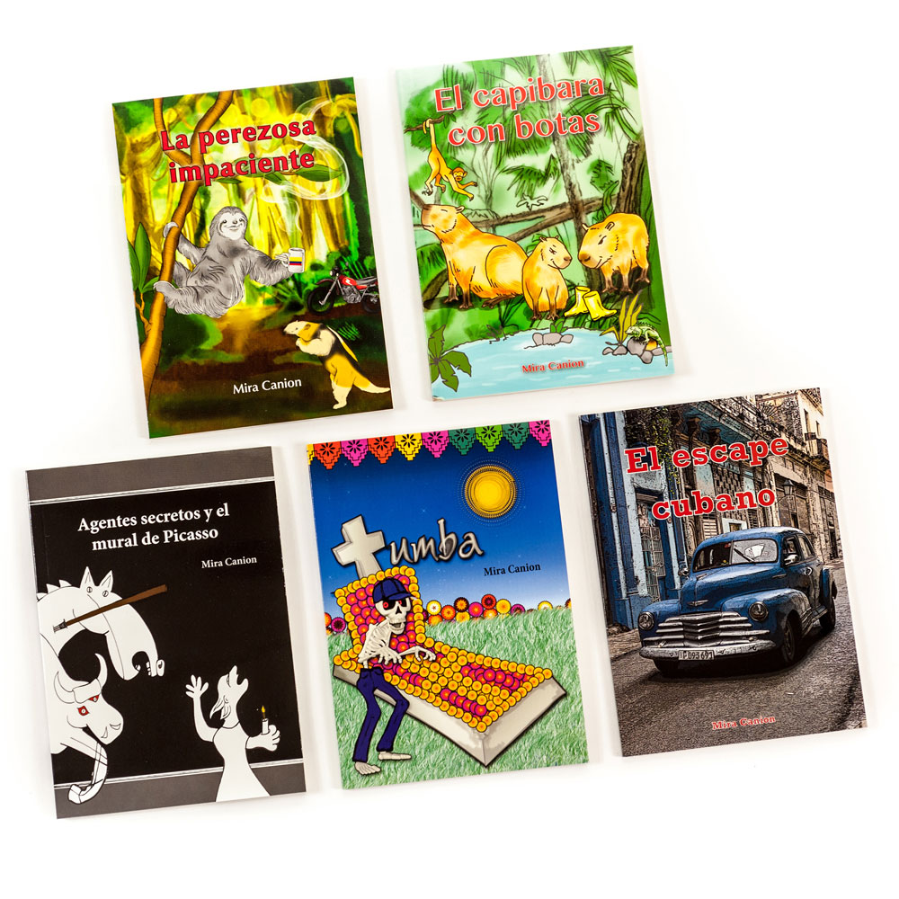 A collection of readers for your free voluntary reading (FVR) library. The bundle contains a single copy of each title listed. There are different titles for a variety of interests. Pick one bundle or more, and create your classroom library. No substitutions on titles or quantities. Unique and total word counts vary. a “https://www.teachersdiscovery.com/product/23488” target=”_blank”Agentes secretos y el mural de Picasso/em(1B3500NE)/a a “https://www.teachersdiscovery.com/product/23520” target=”_blank”Tumba/em (1B3918NE)/a a “https://www.teachersdiscovery.com/product/26126” target=”_blank”El capibara con botas/em(1B5036)/a a “https://www.teachersdiscovery.com/product/26181” target=”_blank”El escape cubano/em (1B5040)/a a “https://www.teachersdiscovery.com/product/27850″ target=”_blank”La perezosa impaciente/em (1B6434)/aClick on the titles above to learn more about the readers in the bundle!Copyright 2014dash;2018. Spanish. Level 1. Middle school, high school. 5 x 8 inches. Softcover, 47dash;110 pages each.img alt=”” src=”//aedownload.net/teachersdiscovery/images/Author_Mira_Canion.jpg” style=”float: left; border-width: 0px; border-style: solid; margin: 0px 6px; height: 150px; padding-right: 10px;” /About the AuthorMira Canion/ is an energizing presenter, author, photographer, stand-up comedienne, and high school teacher. Mira is best known for her spontaneous creativity and quick wit, not only as former CCFLT president and notorious pirate, but also in the classroom. She has been captivating middle and high school students for 20 years with her enthusiasm, high energy, and passion. She has developed innovative approaches to instruction that include storytelling, drama, novellas, music, videos, photos, and technology.