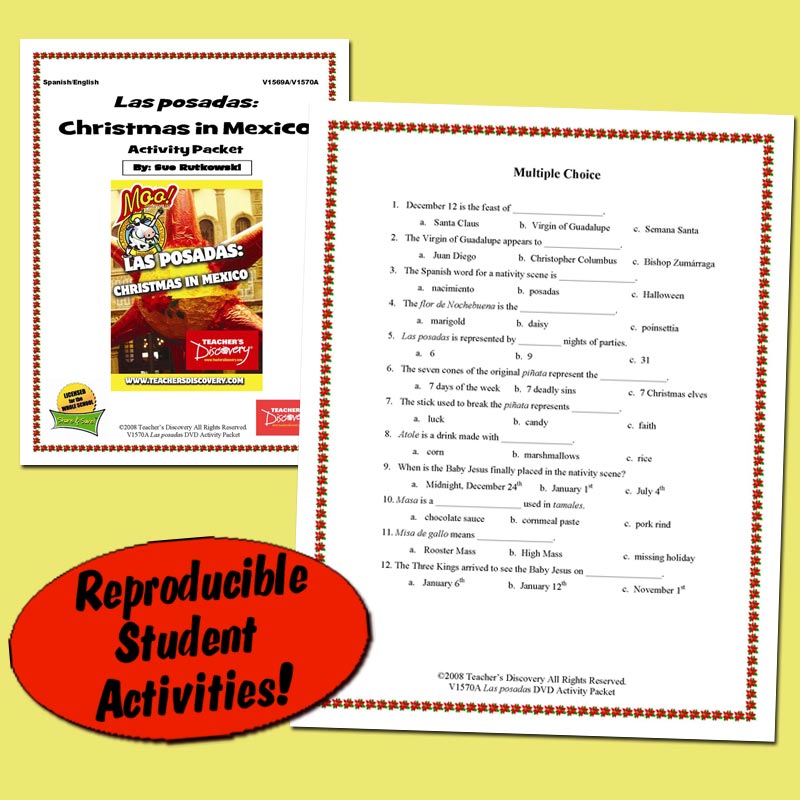 spanThe focus of the video is on the traditions of Christmas in Mexico, not on its religious aspects. Witness the pure devotion of the Mexican people to their Virgin of Guadalupe and the celebration of her arrival. Esther, a Mexican high school student, provides you with a look into her culture and its observation of the holiday as she shares the experience with Jason, an American high school student. Enjoy the entire Christmas holiday season from December 12 to February 2 in Mexico City and Puebla, Mexico. /spanspan style=”color:#FF0000;”Download the free video quiz located in “Additional Info.”/spanspanCopyright 2008. Beginning. English, Spanish. 25 minutes. Not rated. Middle and high school age appropriate./spanspanVideo Download: MP4 file./spanspanVideo DVD: DVD/spanbr /spanThe 2018 Revised Edition Moo! Video Activity Packet is a useful companion to the Las posadas/em: Christmas in Mexico video. It features a variety of updated activities, ACTFL standards alignment, and an answer key. The packet includes higher-level thinking activities, vocabulary comprehension, internet research, creative projects, stories, true or false, comparisons, puzzles, and more! Instant Download Delivery./spanspanCopyright 2018. Beginning. English with Spanish vocabulary. Reproducible. 26 pages./spanspanActivity Packet Download: /spanPDF.Adobe Reader required to view PDF.h1 style=”background-color: rgb(255, 255, 255); margin: 0px; line-height: 29px; font-family: arial, “helvetica neue”, helvetica, sans-serif; font-size: 24px; font-weight: normal; color: rgb(51, 51, 51);”span style=”font-size:20px;”Learn How to Upload Video to YouTube for Google Classroom! a data-toggle=”modal” “#moreinfotwoModal”uCLICK HERE/u/a//span/h1