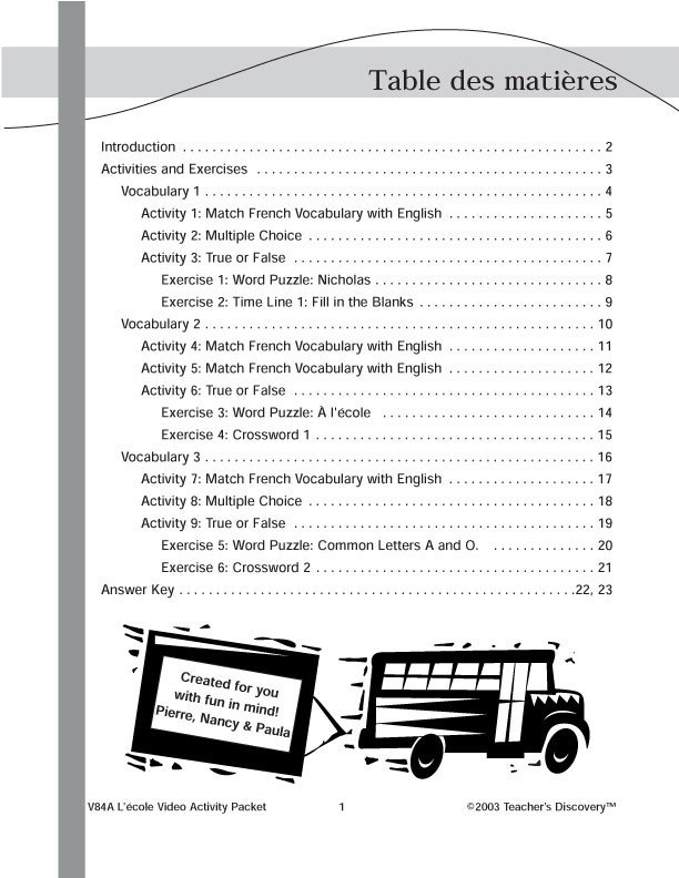 This series, shot in Paris in 2001, shadows a group of Parisian high school students from the moment they get up in the morning and throughout their school-day and after-school activities. Your students will absorb basic vocabulary, simple sentences and some useful colloquial expressions, supported by on-screen titles. Above all, they will effortlessly learn a lot of about French culture from these cool French teens! Episode 2: Nicolas and Aurelie tell us about their school-day.span style=”color:#FF0000;”Download the free video quiz located in “Additional Info.”/spanCopyright 2001. 23 minutes. English with French language and subtitles. Beginning. Middle school, high school. Not rated.Video Download: MP4.Video DVD: DVD.br /Theactivity packet is the perfect companion to the video. The activities and exercises reinforce vocabulary, comprehension, and grammar points covered in the video. Copyright 2003. English, French. Beginning. Middle school, high school. Reproducible. 23 pages (answer key included).Activity Packet Download: PDF. Adobe Reader required to view PDF.