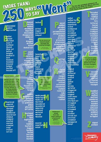 There’s always a more exciting way to say anything!Colorful list of synonyms expands creative writing.Copyright 2015. 19 x 27 inches. Laminated.