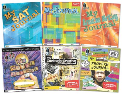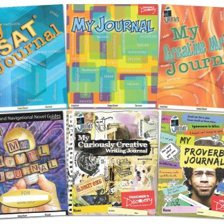 Want to review all our different journals before you submit your P.O.?What’s your biggest fear? Everyone’s a critic! Write a short poem describing your feet. Invent a holiday. Describe an EPIC fail./em Students love writing what they feel when the topics are fun.My Journalsup/sup features:No photocopying–every student gets their own54 topics foster creative writing and thinking skillsEngages even the fussiest writersMore than enough topics to assign one a weekUse as a starter or a starting point for an essay projectInteresting images and sprinkles of quirkinessSet includes one copy of each:My Creative Writing Journal:/em Tried and true–teachers order it year after year. Copyright 2005. High school. (4S0339)My Curiously Creative Writing Journal:/em A sequel to an old favorite. Curious? Copyright 2016. High school. (4S2826)My Proverb Journal:/em Higher-level analyses, comparisons, and connections. Copyright 2016. High school. (4S2827)My Novel Journal:/em Literature analysis journal that works with uANY/u novel. Copyright 2009. High school. (4S1682)My SAT Journal:/em Writers incorporate four keywords into each writing response. Copyright 2005. High school. (4S0497)My Journal:/em There is nothing like the original favorite–perfect for the middle school classroom. Copyright 2005. Middle school. (4S0274)8 x 9 inches. Softcover. 56 pages each.