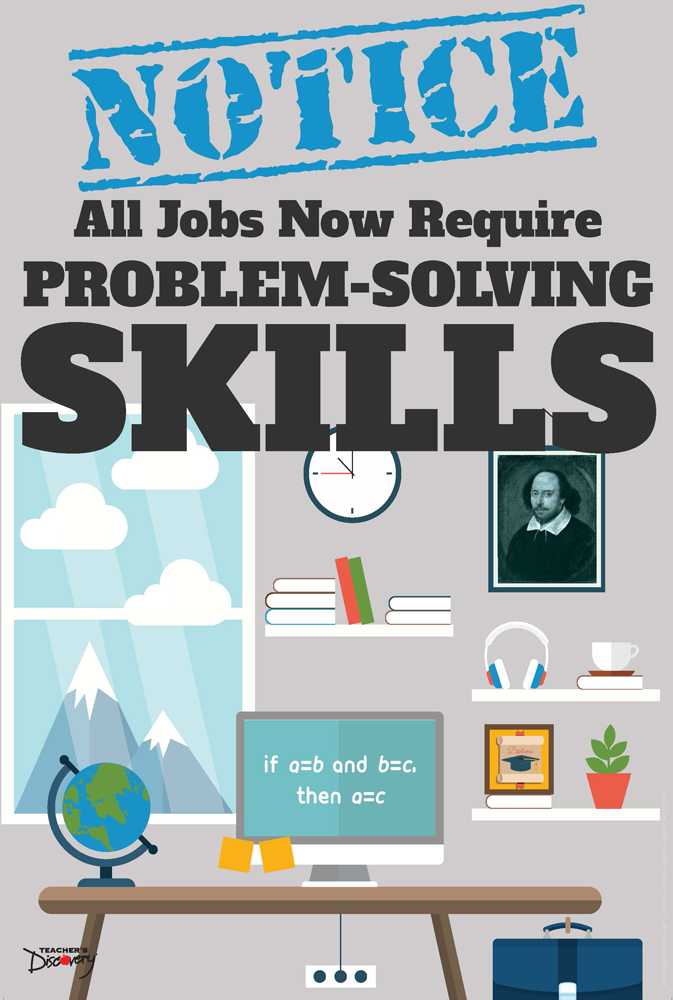 The world always needs good problem solvers! Easily show your students that classroom skills translate to job skills. Copyright 2015. 13 x 19 inches. Cardstock. Not laminated.