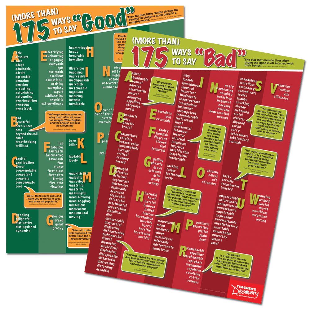 Buy the set and save!More than 175 ways to say “bad” and “good.”How Bad Can it Be? (4P2034)It’s abject, calamitous, harsh, and just wrong!It’s so Bad, it’s Good! (4P2035)Your students will say it’s keen, supreme, topnotch, and wicked!Copyright 2016. 19 x 27 inches. Laminated.