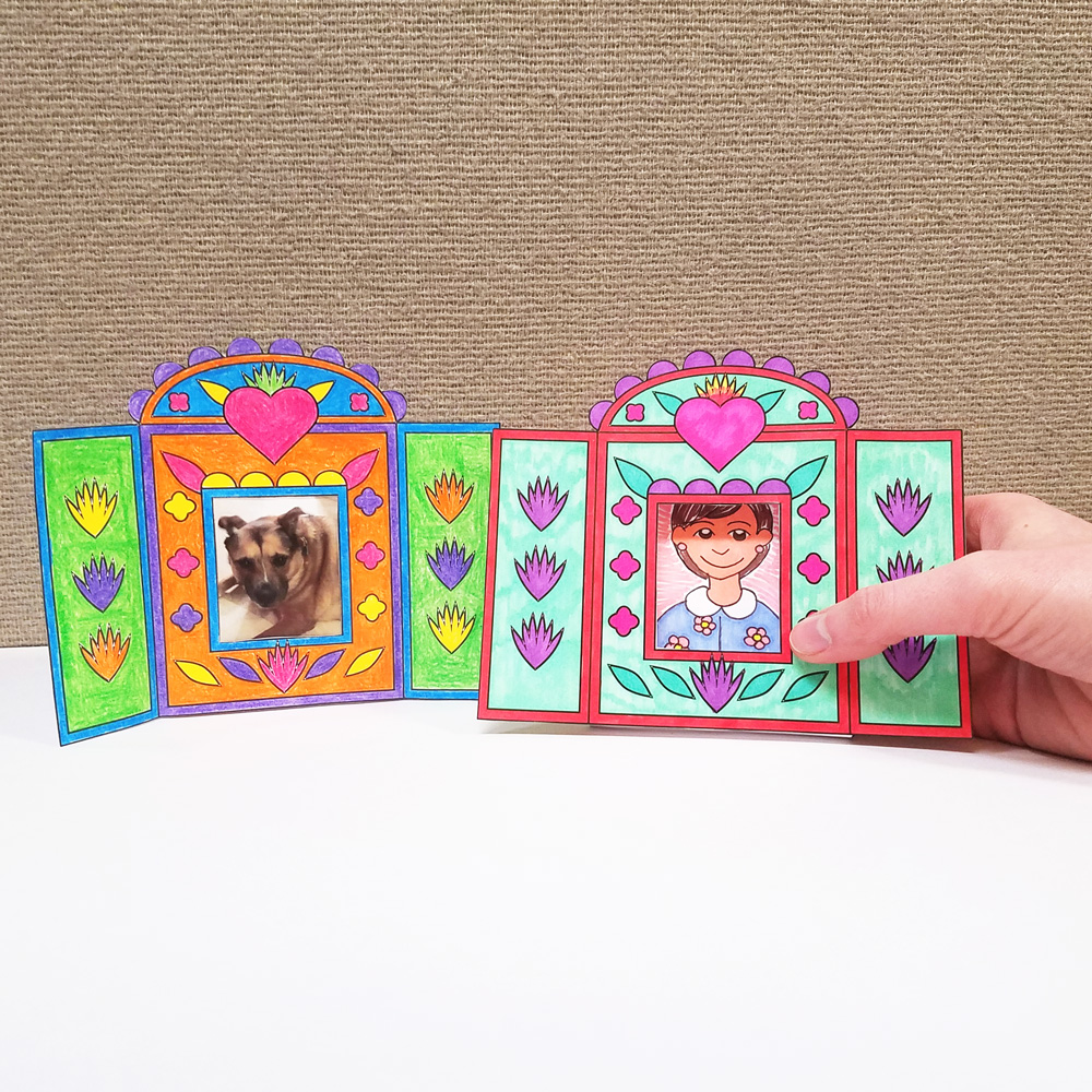 A I>icho/ is a three-dimensional display used to honor a loved one or important figure, or their memory. Let your students show you who’s most important to them with 3D paper fold I>ichos/. All you need is this downloadable, printable PDF pattern with instructions–plus scissors, drawing and coloring supplies, and tape. Reproducible, pattern prints on standard 8 x 11-inch paper.Download.