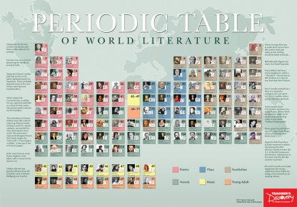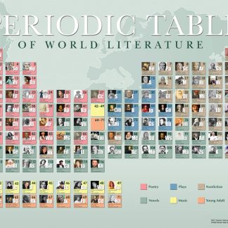 Turn world literature into a science with this periodic amassing of more than 100 writers from around the globe. Organized chronologically, authors are divided by genre and their completely arbitrary atomic number, of course!Copyright 2017. 26 x 38 inches. Laminated.