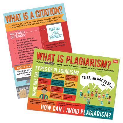 This two-poster set helps students understand what plagiarism is and how to cite sources./ The plagiarism poster shows students what it is, types of plagiarism, and how to avoid plagiarism./li The other poster explains what a citation is, why to cite sources, when to cite, and how to cite. A key resource for every classroom.span19 x 27 inches, laminated. All levels./span