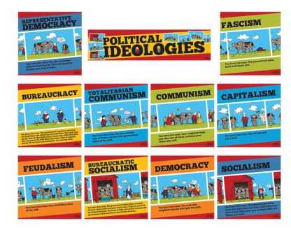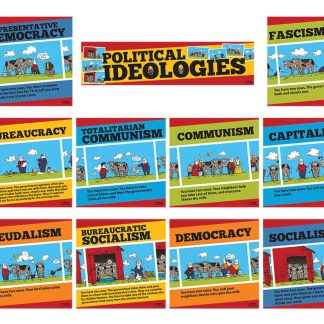 Share the differences in political ideologies in a fun, quirky way with your students! This colorful set is a fresh take on our bestselling poster, complete with 10 mini-posters (12 x 12 inches) plus a 6 x 24 inch topic banner.Printed on glossy cardstock.