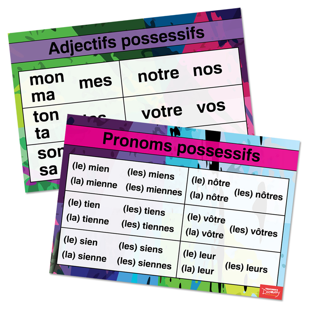 Words for talking about who owns what! Set of two posters, 19 x 13 inches each. Cardstock.