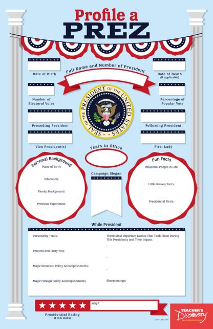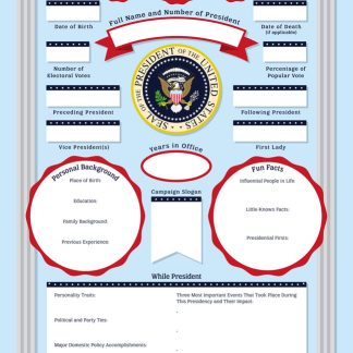 Did you know that the teddy bear was named after Theodore Roosevelt? Or that George W. Bush was a head cheerleader in high school? Students will delve into presidential history, learning both fun and powerful facts with these profile posters. Students create a biography of any past or present U.S. president, analyzing their achievements, impactful events during their presidency, their shortcomings, and more! Ideal for project-based learning in groups, independent activities, research skills, debates, or mock trial preparation. Comes in a tear-off notepad with 35 large color sheets, ready to pull and go! Great to use with the Hero or Villain? mini-posters! 11 x 17 inches. Pad of 35 sheets. Middle school, high school.