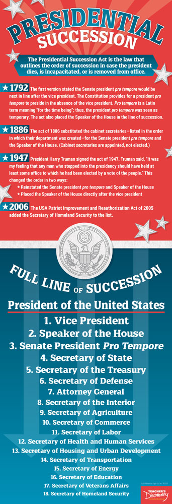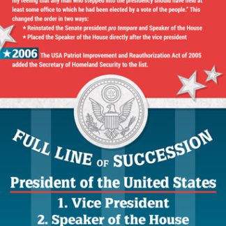 Who’s in the line of succession if the commander in chief is out of commission? The Founding Fathers created a blueprint for presidential succession that’s been modified a few times–see when and why.Includes a free download with additional material including information about the 25th Amendment and the ;ldquo;designated survivor.;rdquo;span style=”color:#FF0000;”Your free download is located in “Additional Info.”/spanCopyright 2019. 13 x 38 inches. Laminated.