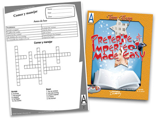 Teachers have always said that the differences between the imperfect and the preterite are hard to teach. Not anymore! Nineteen humorous short stories (plus the clarifying Hoja de Reglas/em) help students understand and choose the correct verb tenses when speaking or writing “in the past.” Preterite and Imperfect Made Easy activities include: crossword puzzles word searches reading question and answer Includes a PowerPoint game and answer key. Co-authored by Tom Alsop and Alan Garfinkel. Copyright 2008. English, Spanish. Intermediate, Advanced. High school. Reproducible.86 pages. Book Download: PDF. PPT game.Adobe Reader required to view PDF. Print Book: Softcover. CD (PDF and PPT game).8 x 11 inches. img alt=”” src=”//aedownload.net/teachersdiscovery/images/Author_Tom_Alsop.jpg” style=”float: left; border-width: 0px; border-style: solid; margin: 0px 6px; height: 155px; padding-right: 10px;” /About the Author Award-winning teacher, presenter, and author Tom Alsop/ continues to share his many years of teaching experience through his popular Teacher’s Discovery readers, grammar books and activity books. His books provide an array of creative, student-centered, hands-on activities that allow students to actively participate in class while using the target language. Tom is a former middle school and high school Spanish teacher who now teaches Spanish at Butler University in Indianapolis. He often presents at world language conferences and leads workshops at schools around the country. He is the director of three summer Spanish teacher immersion programs (Aventura Cultural/) for high school and middle school teachers in Havana, Cuba; Madrid, Spain; and Guadalajara, Mexico.